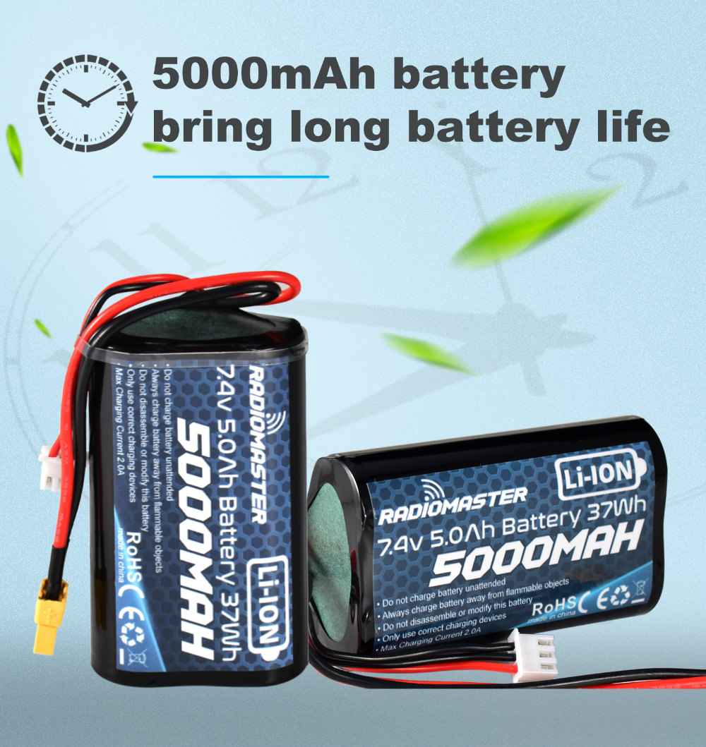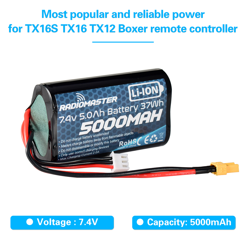 RadioMaster 5000mah 7.4V 2S 37wh Battery High Capacity JST-XH and XT30 Plug for TX12/TX16/TX16S/Boxer Remote Control Transmitter