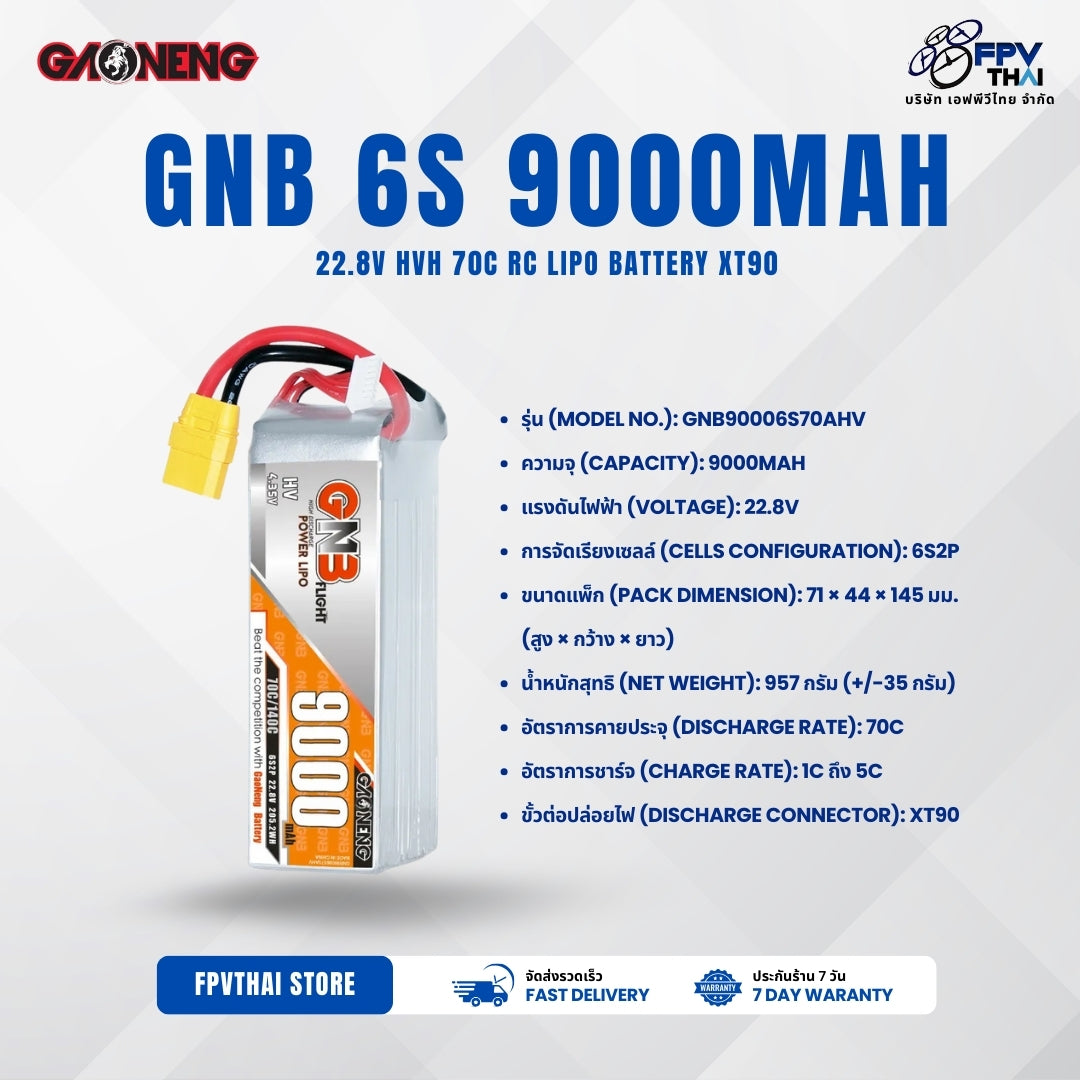 GAONENG GNB 6S2P 22.8V HV 9000mAh 70C RC LiPo Battery XT90