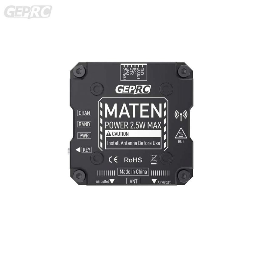 This GEPRC MATEN 5.8GHz 2.5W VTX operates with an input voltage of 7V-36V.